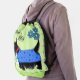 You will love this dog back pack style bag and show your dog love with this cute tote bag with a black terrier dog and personalized with the dog's name and the word "bag" or other words. Customize the words above the art image or delete if you prefer. This whimsical black Scottie Terrier is wearing a blue sweater coat with tonal blue stars and a red collar. A lime green and turquoise ball is behind the Scottie and a large white dog bone is at his or her front paw. The background is a lime green tonal stripe pattern. A serpentine line border surrounds the dog image to make a stylish, trendy and custom decorative decorative backpack. Three turquoise teal blue flowers are above the dog. This cute, cuddly and trendy dog is original art by Phyllis Dobbs and will melt the heart of a dog lover. This Scottie is one of a series of 6 Scotties and all are fully customizable to make it your own! You will find many uses for this bag!