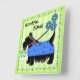 Show your dog love with this cute wall clock with a black terrier dog and personalized with the words "Scottie time" or your dog's name or other words. Customize the words above the art image or delete if you prefer. This whimsical black Scottie Terrier is wearing a blue sweater coat with tonal blue stars and a red collar. A lime green and turquoise ball is behind the Scottie and a large white dog bone is at his or her front paw. The background is a lime green tonal stripe pattern. A serpentine line border surrounds the dog image to make a stylish, trendy and custom decorative wall clock. Three turquoise teal blue flowers are above the dog. This cute, cuddly and trendy dog is original art by Phyllis Dobbs and will melt the heart of a dog lover. This Scottie is one of a series of 6 Scotties and all are fully customizable to make it your own!