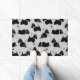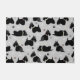 Cute black Scottie dogs wearing collars, with pawprints and dog bones, cute black Scottish Terrier pattern.