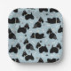 Cute black Scottie dogs wearing collars, with pawprints and dog bones, cute black Scottish Terrier pattern.