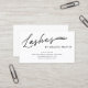 A minimalist one sided business card for a lash artist or lash technician with lashes written in a simple thin brush script with lashes fanning out from the last letter. Add your name and contact info in plain modern letters.