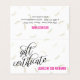Chic gift card for your lash business with faux gold eye lashes sprinkled over white background. Gift Certificate is written in a lovely swirly black script. Your name and service in hot pink block letters. Add the name of your business on the cover and, on the back, your contact info. Inside you can write a disclaimer or restrictions of the gift card.