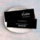 Solid black earring display holder with two printed hole "markers". Script font in white.