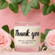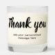 Our scented thank you candle is the perfect way to express gratitude to someone special. Featuring a modern black script typography on a clear background, this candle offers a stunning aesthetic that is ready for easy personalization. Filled with a delightful fragrance that will uplift any space, this candle is a thoughtful and elegant gift that will make someone feel appreciated. With its sophisticated design and charming scent, our scented thank-you candle is sure to delight your loved ones.