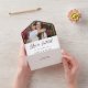 Photo all in one wedding invitation with elegant black fonts against a white background. You're invited is written at the top, beneath a photo of the happy couple, and above an informal wedding invitation.