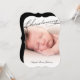 This modern religious invitation flat card accommodates a single photo layout on the front and features an elegant and classic calligraphy script with a simple beaded rosary cross accent.