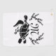 Sea turtle swimming in a tribal silhouette style. While the original was a based of an green tortoise, the shape of the segments bagging to be twisted and turned. Above the shell to the left and right is black seaweed leaving space for text, default is a letter "M" m is short for monogram. And below the turtle are water swirls.