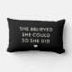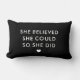 Modern statement lumbar pillow that will be a perfect accent to any room. This motivational pillow features modern typography with a black background. She believed she could, so she did. Other colors are available.