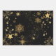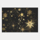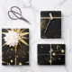 Black & Shimmering Gold Starbursts & Stardust Wrapping Paper Sheets