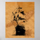 Black ship silhouette of a classic multi-sail ship and a vintage style nautical map of the Florida Keys Islands.