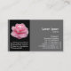 A business or profile card template with a band on the left, with a single flower motif, decorated with vertical text captions labeling the address area and contact details. The reverse of the card has the same color theme as the front but has been left blank which can be left as is, or further customized. Suitable for a variety of businesses.