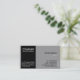 A business or profile card template with a band on the left, decorated with vertical text captions labeling the address area and contact details. The reverse of the card has the same color/texture theme as the front but has been left blank which can be left as is, or further customized. Suitable for a variety of businesses.