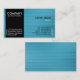 A business or profile card template with a band on the left, decorated with vertical text captions labeling the address area and contact details. The reverse of the card has the same color/texture theme as the front but has been left blank which can be left as is, or further customized. Suitable for a variety of businesses.