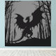Black Silhouette Dragon on Grey - Fantasy | Canvas Print