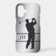 Black Silhouette Golfer on Silver Monogram iPhone Case