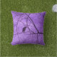 This outdoor fabric pillow for your decor has a lone crow and barren tree branches in black silhouette against a background of a pretty purple sky at dusk.