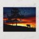 Black Silhouette of Wolf, Birds and Tree in Sunset Postcard