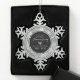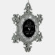 Black with elegant silver tones vintage floral damasks and double heart, 25th wedding anniversary christmas ornament. Customizable text