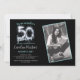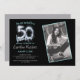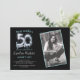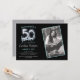 A fancy, black and silver modern 50th birthday photo invitation you can personalize and send out for your fiftieth birthday party bash. Replace the sample photo with one of yours. The silver and ice blue text colors can be changed as well as the font and font size using the edit menu. The back of the card is held in metallic silver, matching the font color in the front.