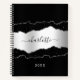 Black and faux silver, agate, marble stone print as background. Personalize and add your name and a year. The name is written with a modern hand lettered style script.