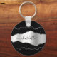 Black silver agate marble name script keychain