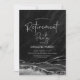Black silver agate retirement party invitation. Elegant modern design featuring watercolor agate marble geode background, faux glitter silver and typography script font. Trendy invite card perfect for a stylish women's retirement celebration. Printed Zazzle invitations or instant download digital printable template.