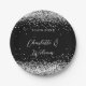 Black silver confetti script wedding paper plates