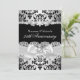 Black Silver Damask Pearl Bow 25th Anniversary Invitation