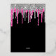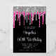 Black Silver Deep Pink Glitter Drips 60th Birthday Foil Invitation