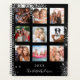 Make your own unique family photo collage as a gift for your mom, wife or yourself. Use four, 9 of your favorite photos of your family, friends, dream travel destination or pet! Personalize and add a name and a year. The name is written with a modern hand lettered style script. Black background, white text. Decorated with faux silver glitter dust.