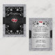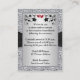 This black and silver gray floral reception enclosure card has a PRINTED black ribbon with a pair of diamond jewels and red FAUX glitter joined hearts on it. It also has a silver FAUX foil outer border with silver grey flowers and vines on it that matches the wedding invitation shown below. If you re-size the card, or if you change fonts, or the size of the font, some of the text may get cut-off. Everything will print as you see it on your monitor. I will not see your card, and Zazzle will NOT correct anything (typos, mis-alignment etc.). The text is customizable. If you need help with this card, please email me BEFORE you place your order. If you require any other matching items, please email your request to niteowlstudio@gmail.com.