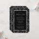 Elegant black and silver floral celebration of life invitation featuring a silver botanical frame. A floral photo frame at the back.