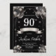 Black Silver Glitter Balloons 90th Birthday Party Invitation
