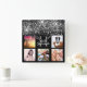 A unique gift or a treat for yourself celebrating her/your life with a collage of 5 of your own photos, pictures. Personalize and add a monogram letter. A stylish black background . Decorated with faux silver glitter dust. The name is written with a modern hand lettered style script.