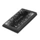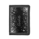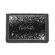 A stylish black background. Decorated with faux silver glitter dust. Personalize and add your name. The name is written with a hand lettered style script.