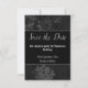 BLACK SILVER GLITTER FLORAL PATTERN SAVE THE DATE RSVP CARD