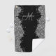 Add a touch of elegance and sparkle with this sophisticated black and silver glitter monogram design. Set against a deep black background, shimmering silver glitter accents create a luxurious contrast that feels both modern and timeless. The focal point is a beautifully flowing script name, styled in an elegant cursive font that adds a soft, personal touch to the bold glitter backdrop.