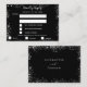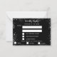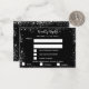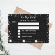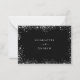 A chic black background. Decorated with faux silver glitter, sparkles. Personalize and add the reply by date, dinner menu choises and your names.