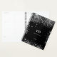 Black background, white text. Decorated with faux silver glitter dust. Personalize and add your monogram initials, name and year.