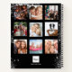 Make your own unique family photo collage as a gift or for yourself. Use four, 9 of your favorite photos of your family, friends, dream travel destination or pet! Personalize and add a name and your monogram letter. The name is written with a modern hand lettered style script with swashes. A classic black background, decorated with faux silver glitter dust. To keep the swashes only delete the sample name, leave the spaces or emoji's in front and after the name.