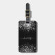 A stylish black background. Decorted with faux silver glitter dust. Personalize and add a name. The first name is written with a modern hand lettered style script.