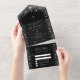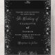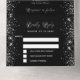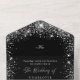 A trendy black background, decorated with faux silver glitter, sparkles. Personalize and add your names, monogram and wedding details. White colored letters.