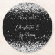 A stylish black background. Decorated with faux silver glitter, sparkles. Personalize and add your names and a date.