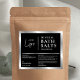 Add the finishing touch to your bath salts, body soak or any other bath & body product with this elegant waterproof product label design. Featuring faux silver effects, black background, space for your logo and product name and ingredients, this modern product sticker is sure to add a glam touch to your products packaging design. Perfect to use for your bath soak pouches or jars.