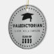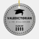 Designed with a guy in mind, this silver valedictorian graduation Christmas ornament features bold and masculine typography. It' is very easy to add your graduate's name and class year in this template. A graduation cap is at the top of the design. A double row of black dots frames the sticker and gives it a polished look.
