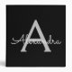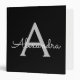 Silver and Black simple Script Monogram Name Binder. This makes the perfect sweet 16 birthday, wedding, bridal shower, anniversary, baby shower or bachelorette party gift for someone that loves glam luxury and chic styles.