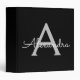 Black Silver Modern Script Girly Monogram Name 3 Ring Binder