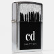 Black silver monogram initials glitter custom zippo lighter