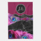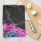 Black Silver Peafowl Marble Agate Glam Kitchen Towel