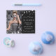 On front: Add a vertical size photo. A classic black background color, decorated with faux silver stars. Personalize and add a name and details. White letters.